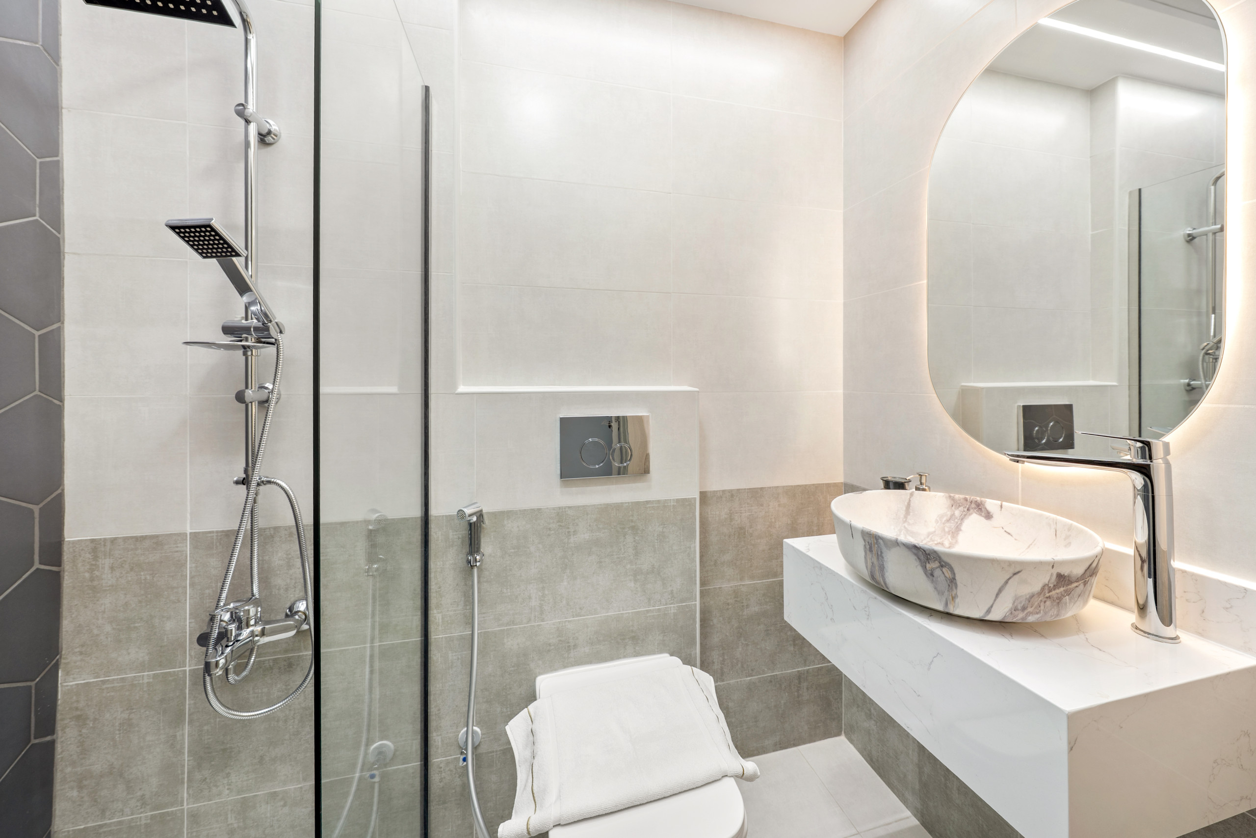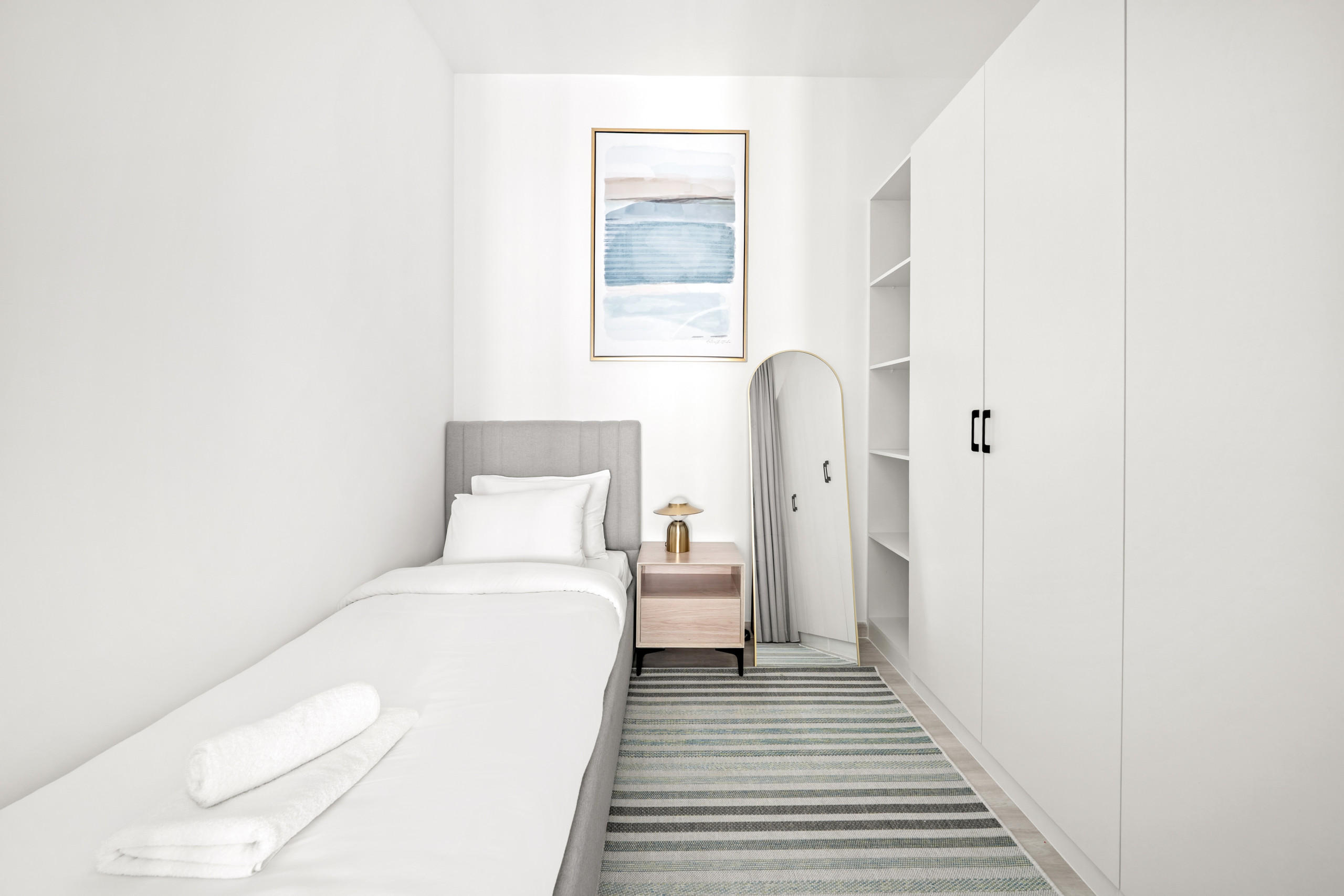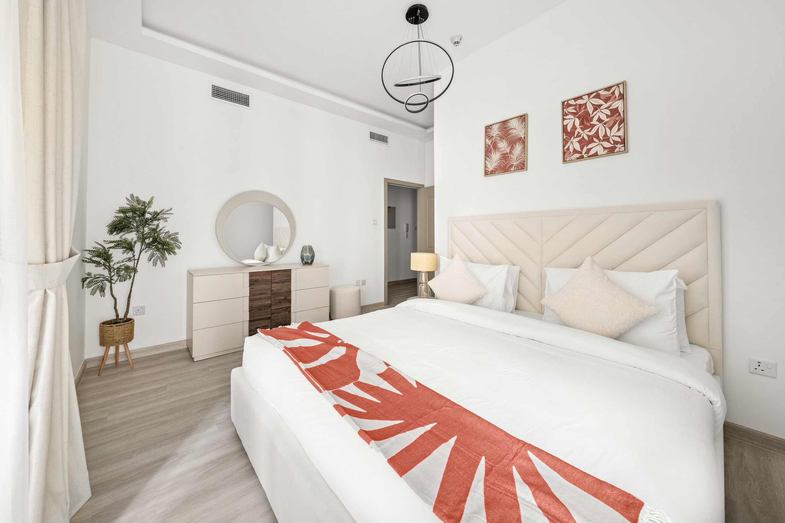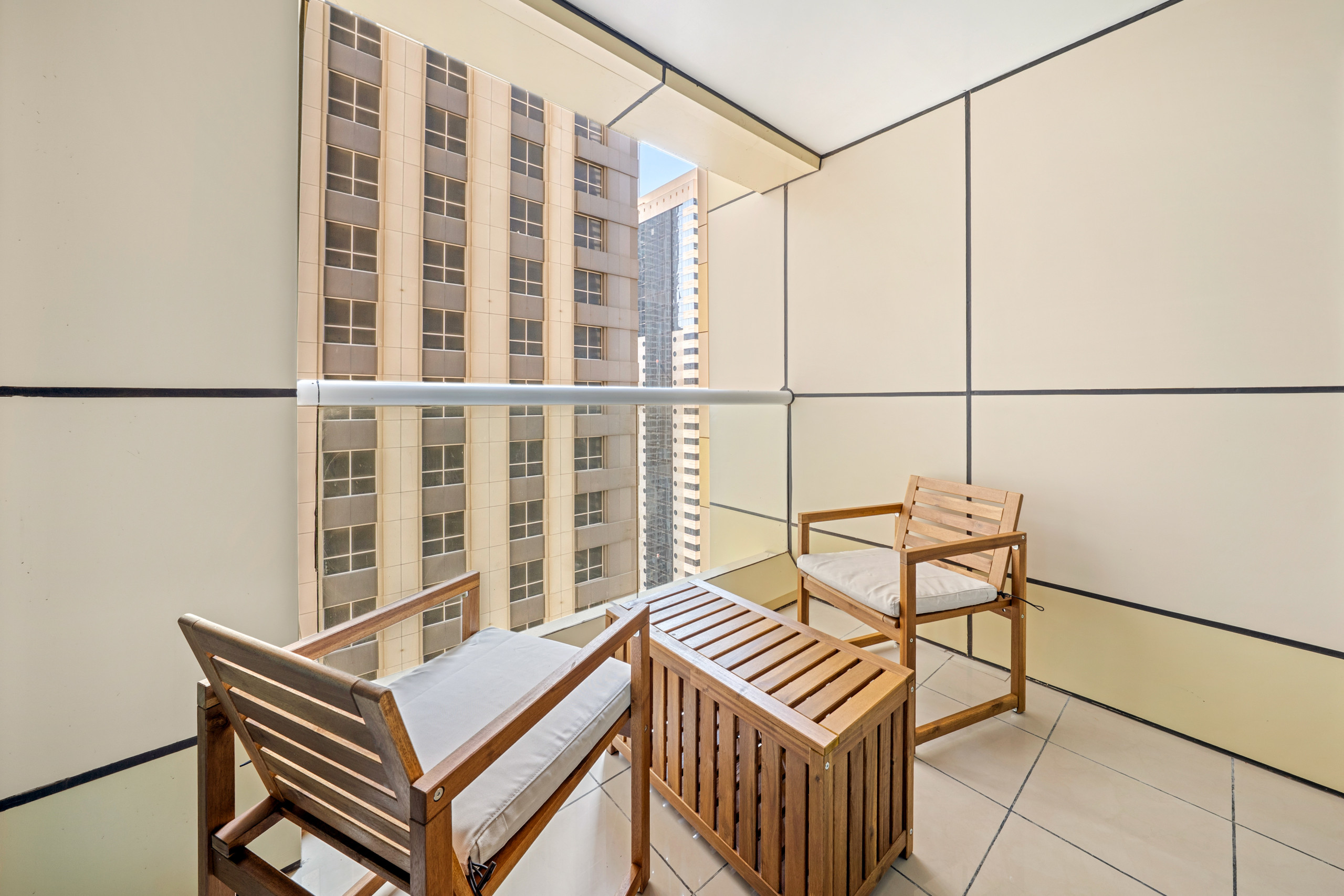 The apartment in Dubai has 2 bedrooms and has capacity for 5 people (max. 4 adults). The apartment is 917 ft². The accommodation is equipped with the following items: elevator, outdoor furniture, washing machine, iron, internet (Wi-Fi), hair dryer, balcony, children area, gym / fitness centre, air-conditioned, communal+children's swimming pool, garage in the same building, 1 TV. In the electric open plan kitchen, refrigerator, microwave, oven, freezer, dishwasher, dishes/cutlery, kitchen utensils, coffee machine, toaster and kettle are provided.