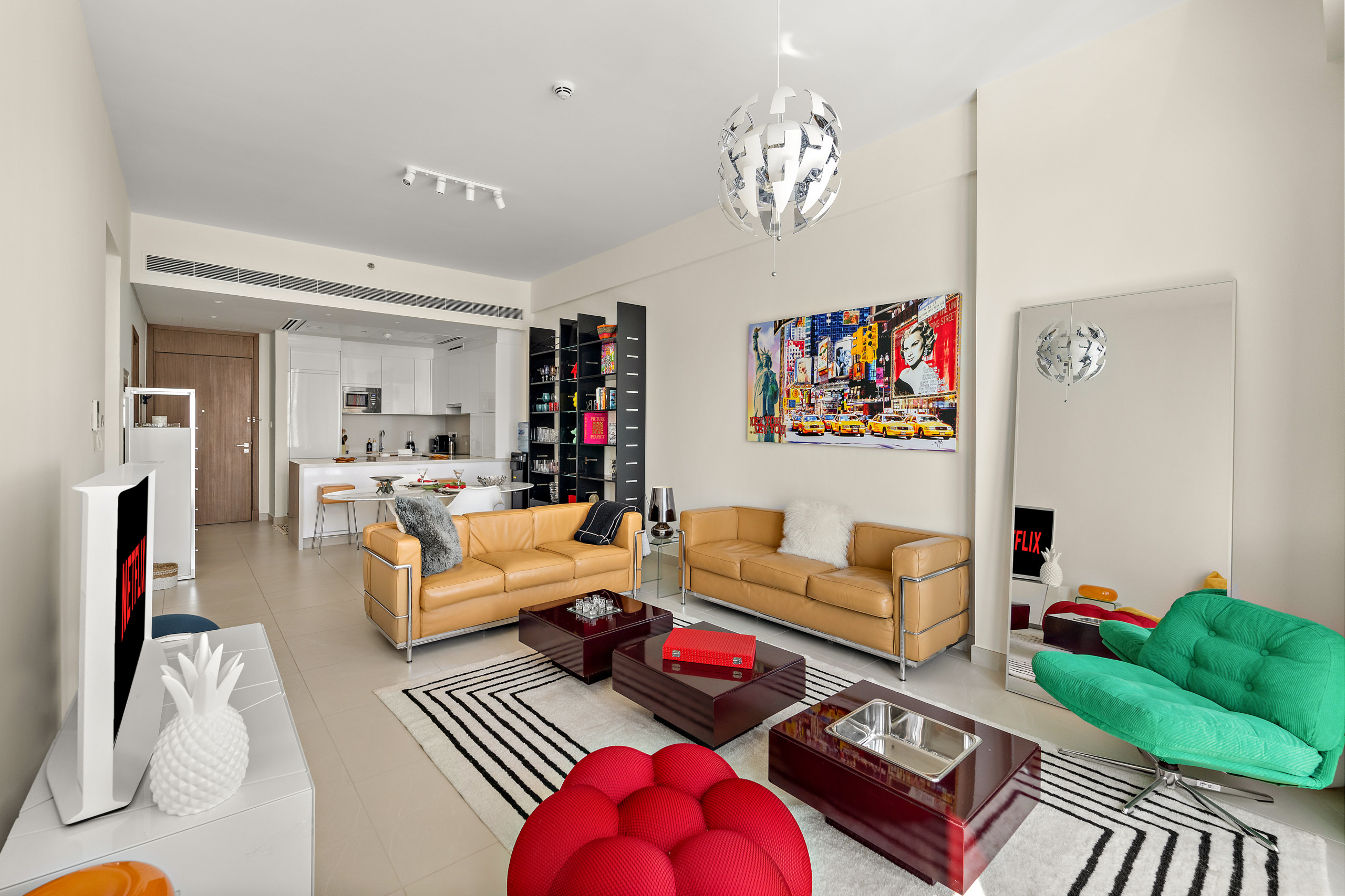 The apartment in Dubai has 1 bedrooms and has capacity for 3 people (max. 2 adults). The apartment is 972 ft². The accommodation is equipped with the following items: elevator, outdoor furniture, washing machine, iron, internet (Wi-Fi), hair dryer, balcony, gym / fitness centre, alarm, air-conditioned, communal+children's swimming pool, garage in the same building, 1 TV.In the electric open plan kitchen, refrigerator, oven, freezer, dishes/cutlery, kitchen utensils and kettle are provided.
