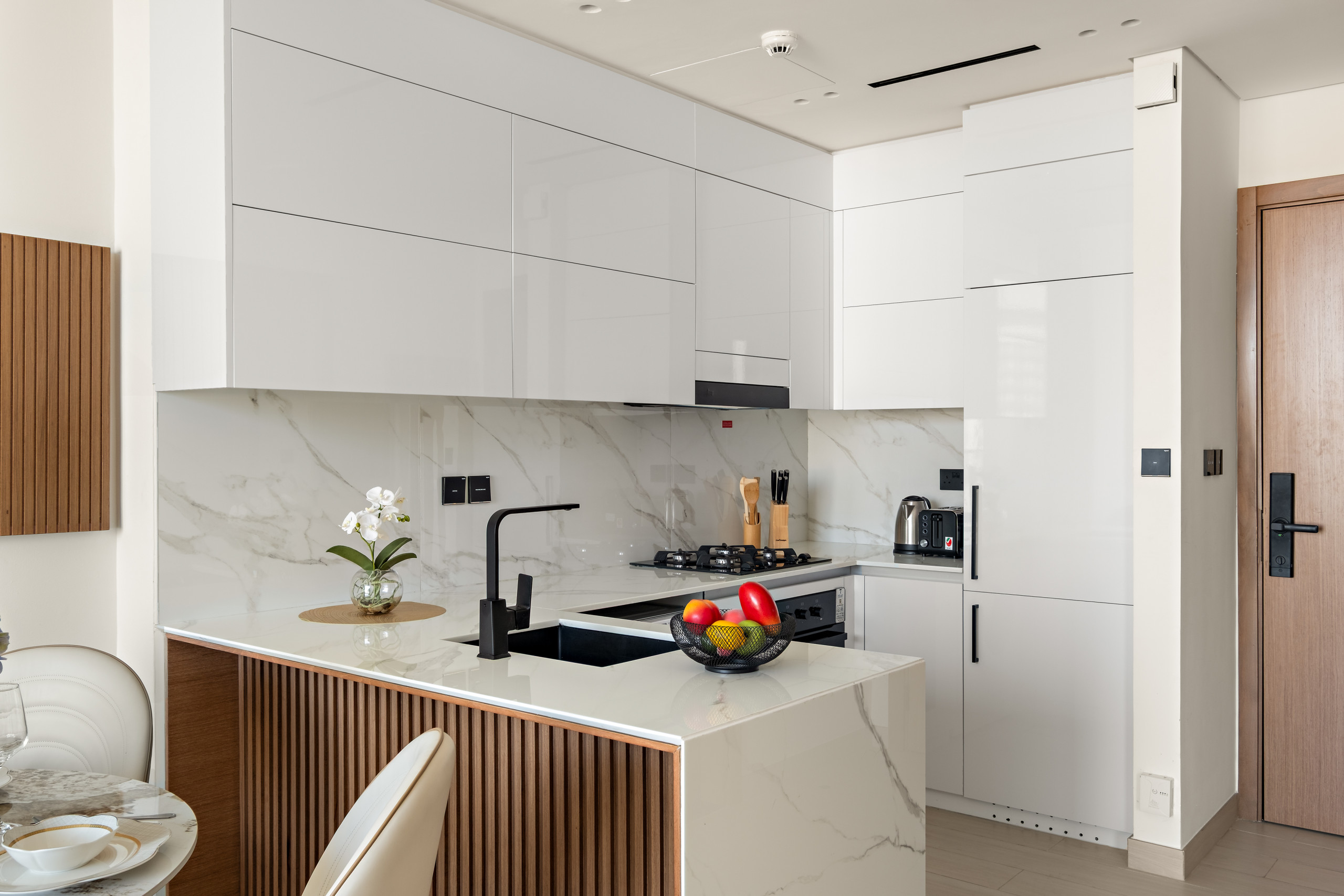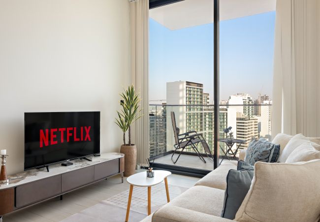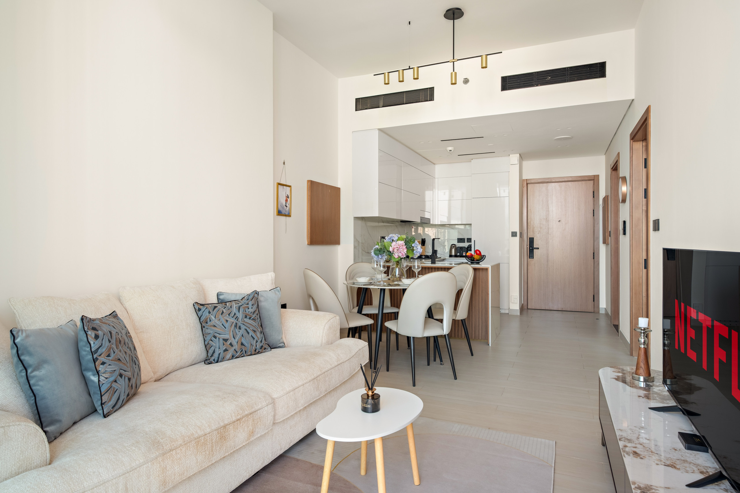 The apartment in Dubai has 1 bedrooms and has capacity for 3 people (max. 2 adults). The apartment is 692 ft². The accommodation is equipped with the following items: elevator, washing machine, iron, internet (Wi-Fi), hair dryer, balcony, gym / fitness centre, air-conditioned, communal+children's swimming pool, garage in the same building, TV.In the gas open plan kitchen, refrigerator, oven, dishes/cutlery, kitchen utensils, coffee machine and kettle are provided.