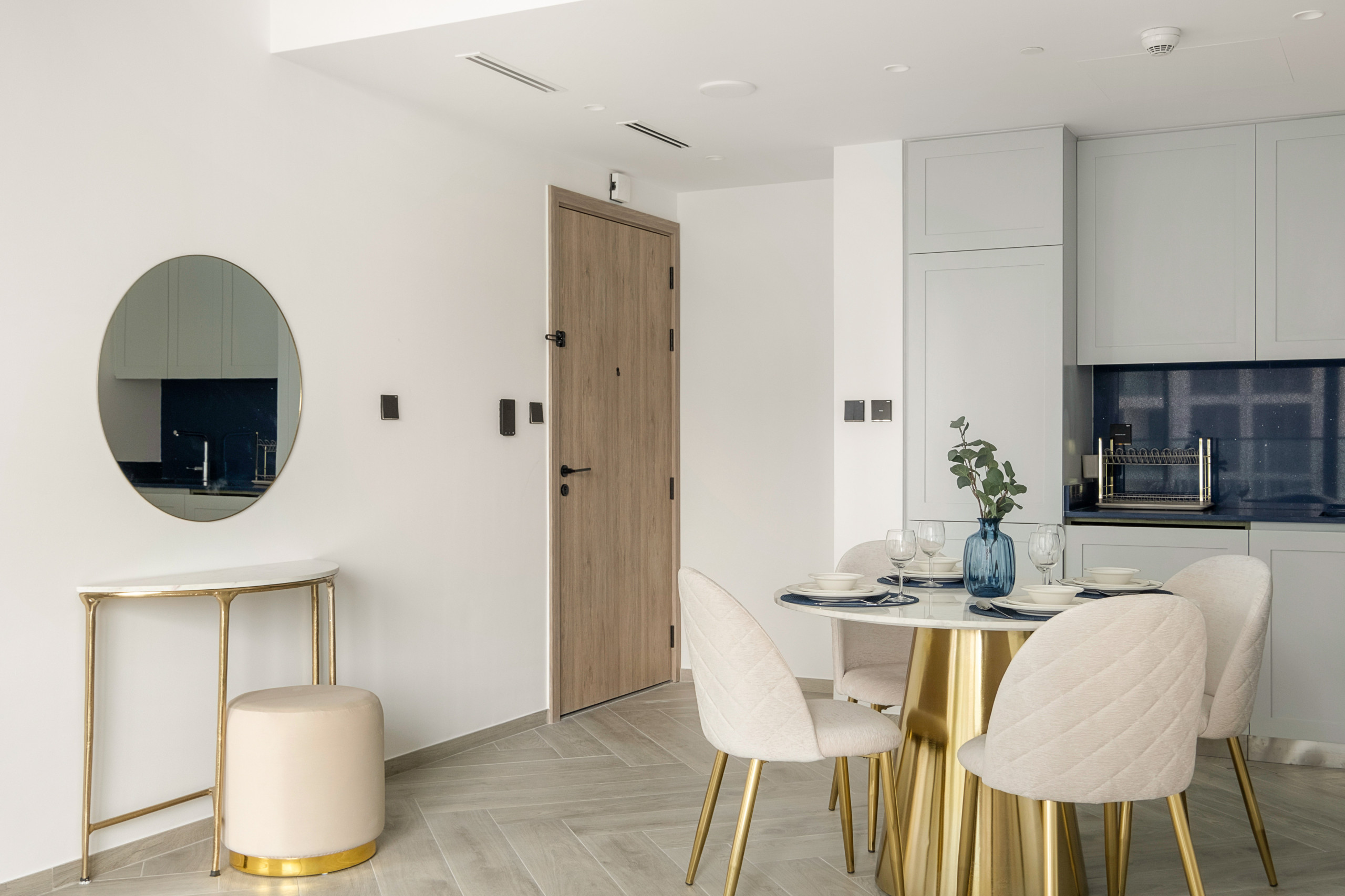 The apartment in Dubai has 1 bedrooms and has capacity for 3 people (max. 2 adults). The apartment is 648 ft². The accommodation is equipped with the following items: elevator, outdoor furniture, terrace, washing machine, iron, internet (Wi-Fi), hair dryer, balcony, children area, tennis court, squash court, paddle tennis court, gym / fitness centre, alarm, air-conditioned, communal+children's swimming pool, garage in the same building, 1 TV.In the gas open plan kitchen, refrigerator, oven, freezer, dishes/cutlery, kitchen utensils, coffee machine, toaster and kettle are provided.