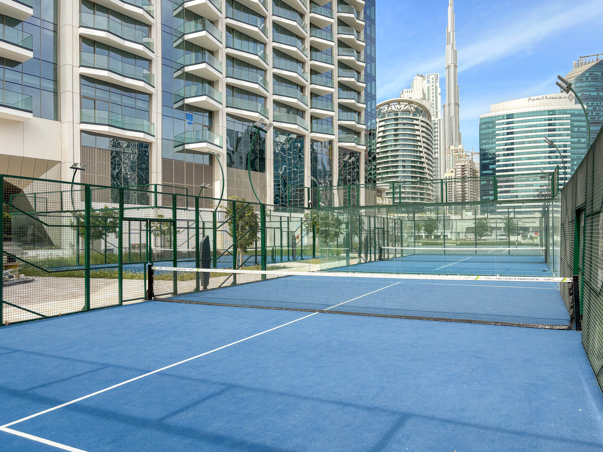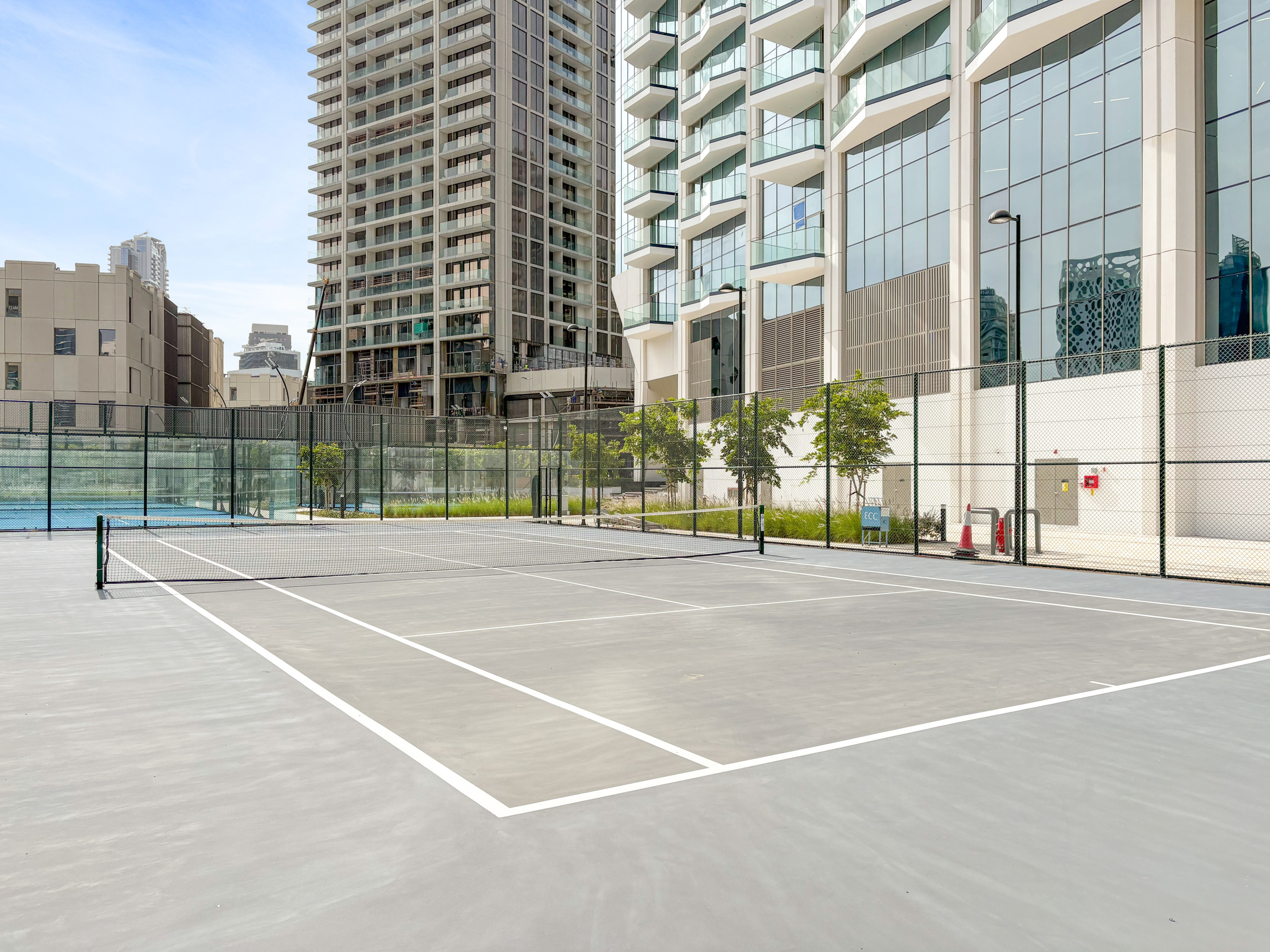 The apartment in Dubai has 1 bedrooms and has capacity for 3 people (max. 2 adults). The apartment is 648 ft². The accommodation is equipped with the following items: elevator, outdoor furniture, terrace, washing machine, iron, internet (Wi-Fi), hair dryer, balcony, children area, tennis court, squash court, paddle tennis court, gym / fitness centre, alarm, air-conditioned, communal+children's swimming pool, garage in the same building, 1 TV. In the gas open plan kitchen, refrigerator, oven, freezer, dishes/cutlery, kitchen utensils, coffee machine, toaster and kettle are provided.