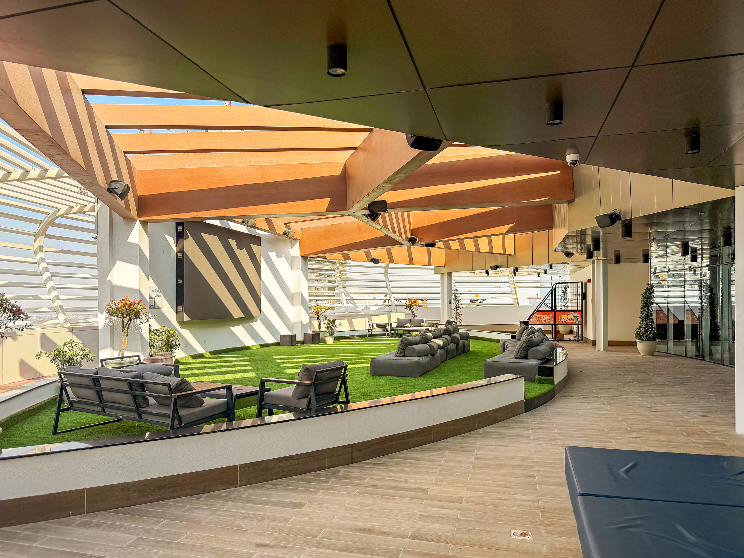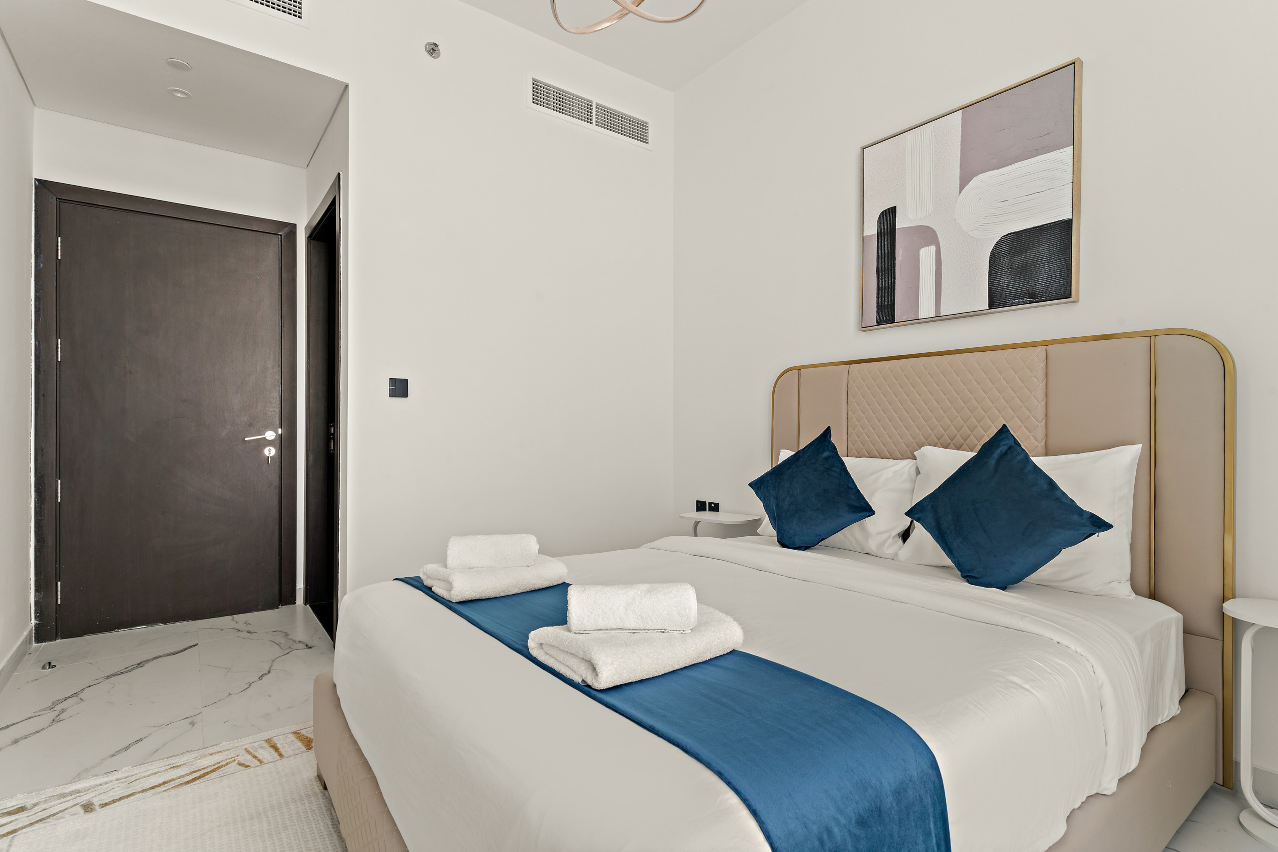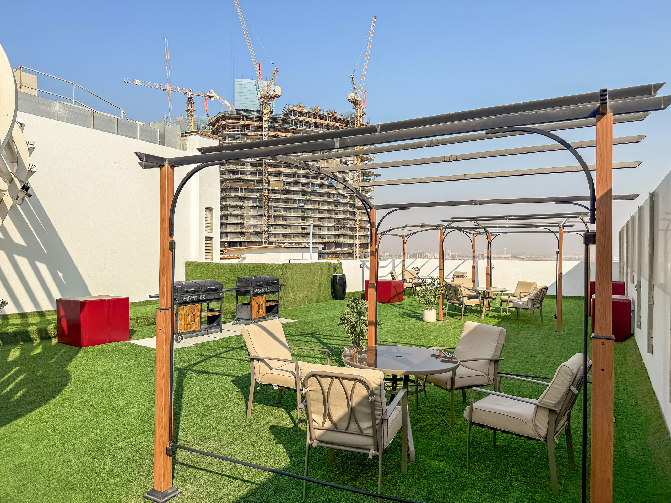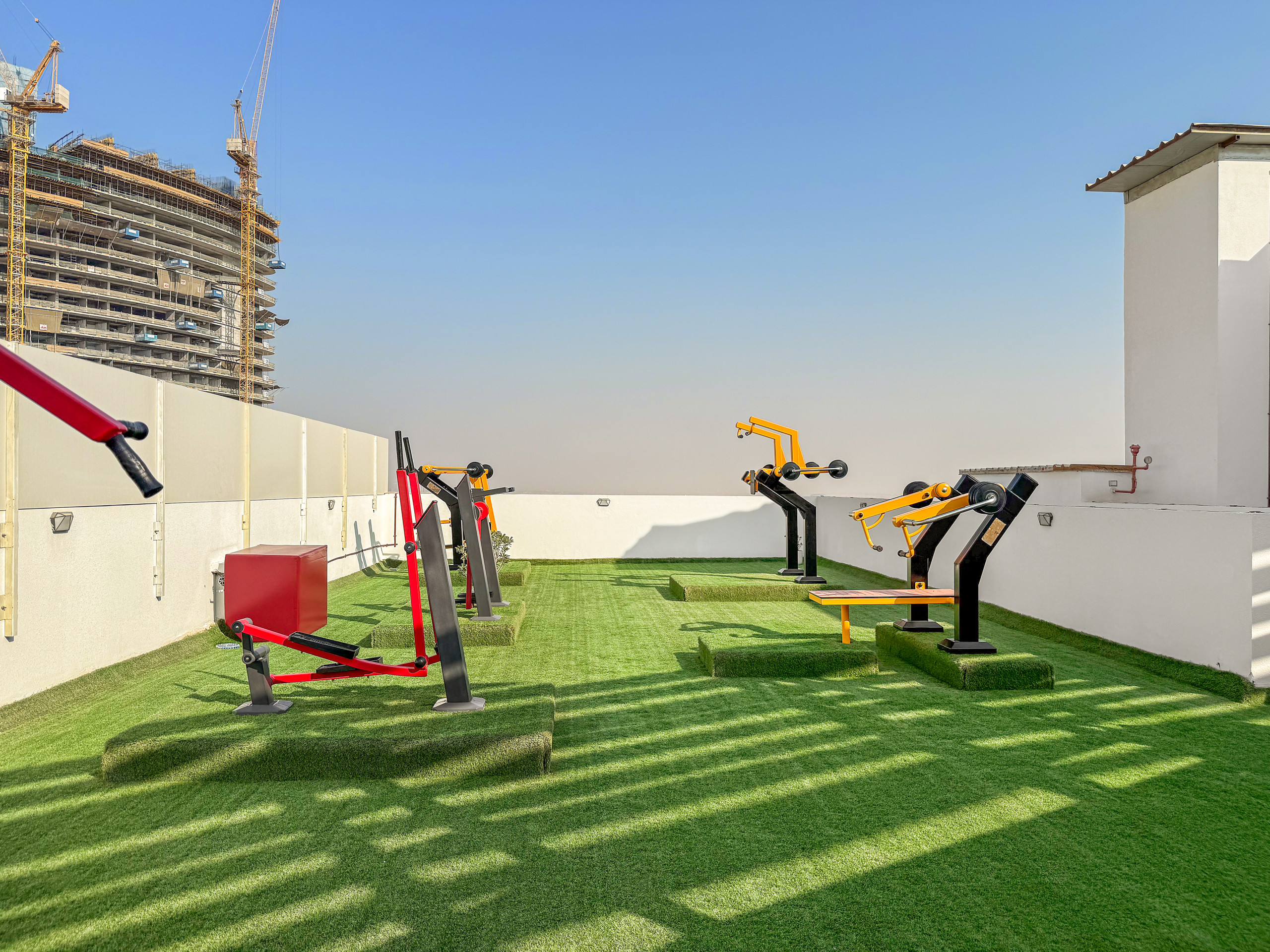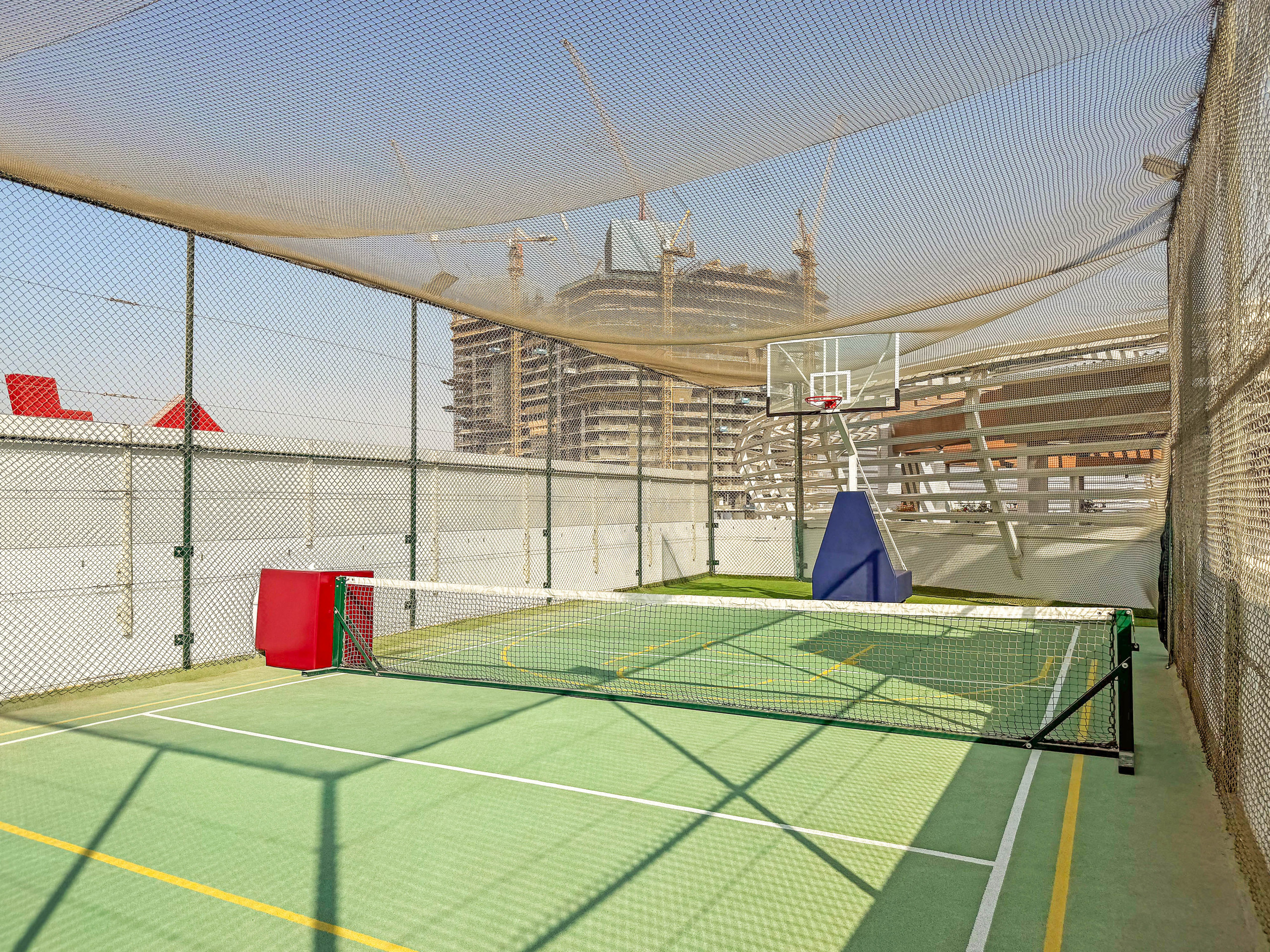 The apartment in Dubai has 2 bedrooms and has capacity for 5 people (max. 4 adults). The apartment is 1,041 ft². The accommodation is equipped with the following items: outdoor furniture, terrace, washing machine, barbecue, internet (Wi-Fi), balcony, children area, tennis court, gym / fitness centre, air-conditioned, communal+children's swimming pool, garage in the same building, 1 TV. In the gas open plan kitchen, refrigerator, microwave, oven, freezer, dishes/cutlery, kitchen utensils, toaster and kettle are provided.
