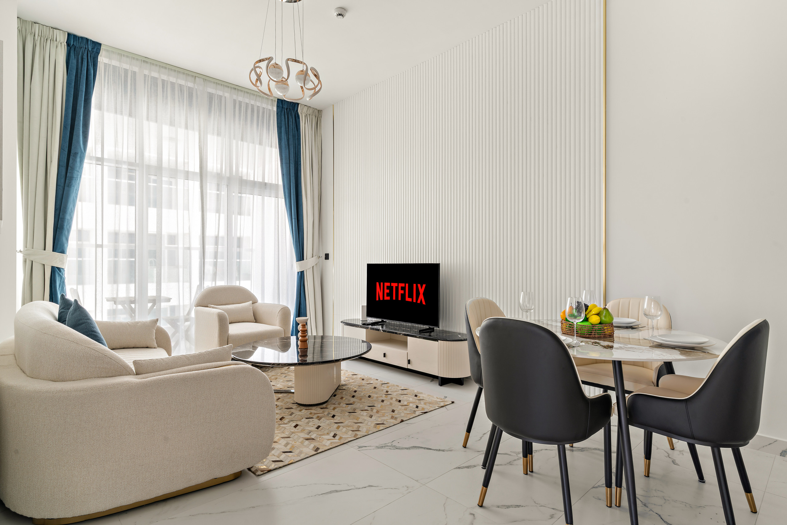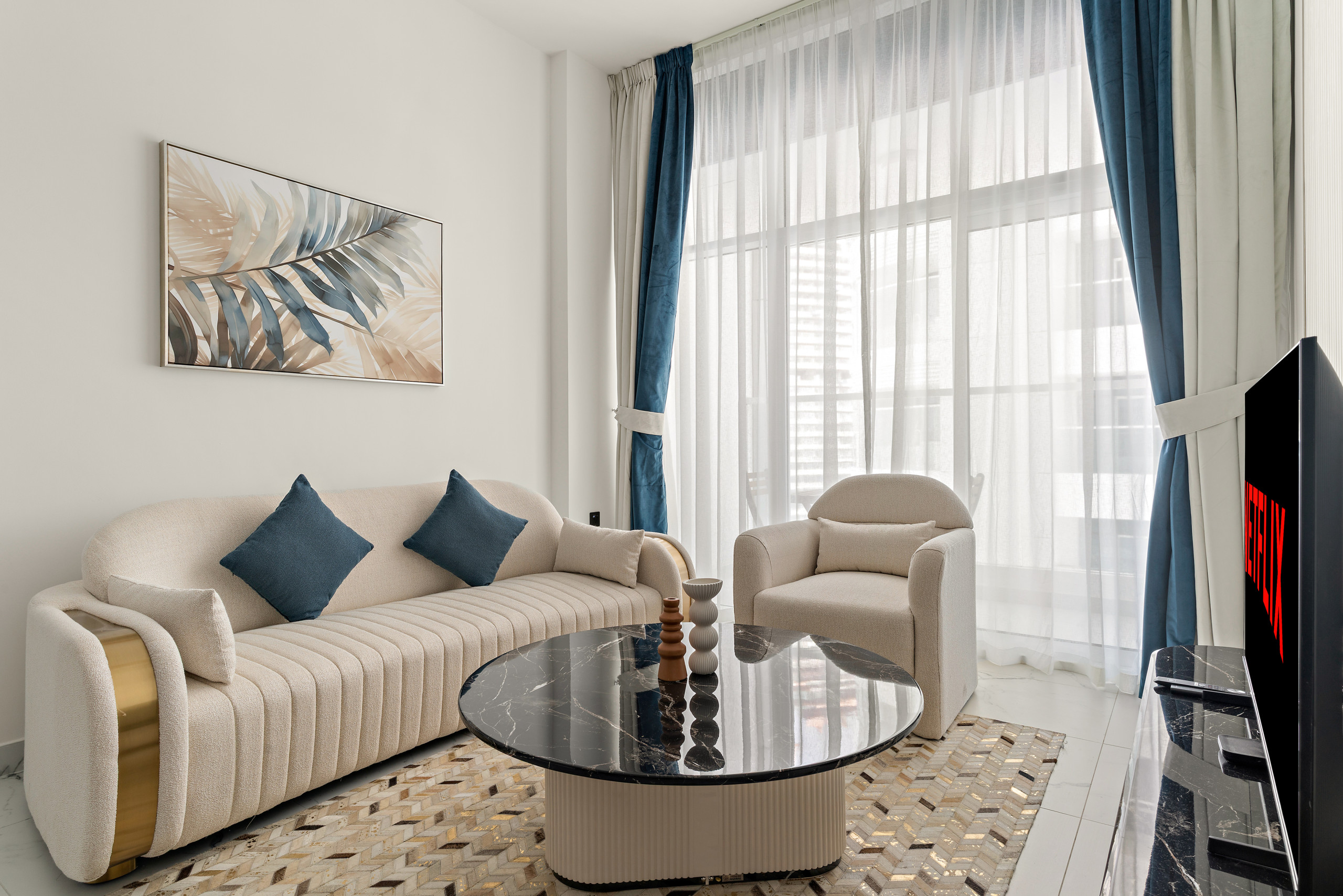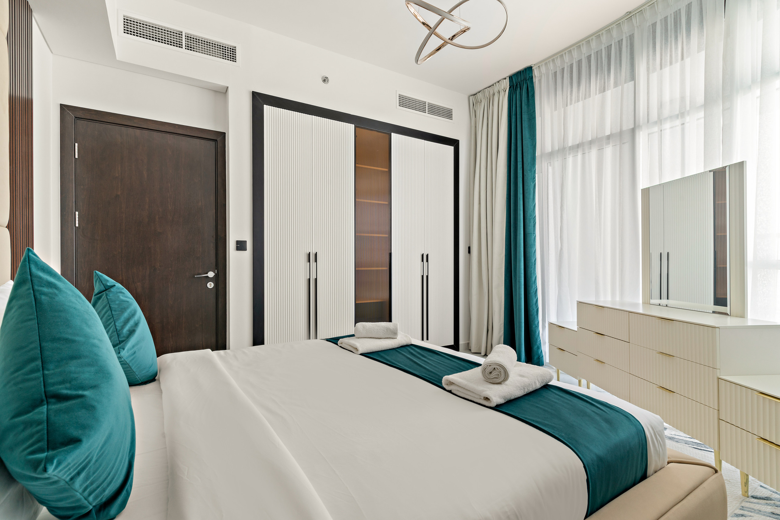 The apartment in Dubai has 2 bedrooms and has capacity for 5 people (max. 4 adults). The apartment is 1,041 ft². The accommodation is equipped with the following items: outdoor furniture, terrace, washing machine, barbecue, internet (Wi-Fi), balcony, children area, tennis court, gym / fitness centre, air-conditioned, communal+children's swimming pool, garage in the same building, 1 TV.In the gas open plan kitchen, refrigerator, microwave, oven, freezer, dishes/cutlery, kitchen utensils, toaster and kettle are provided.