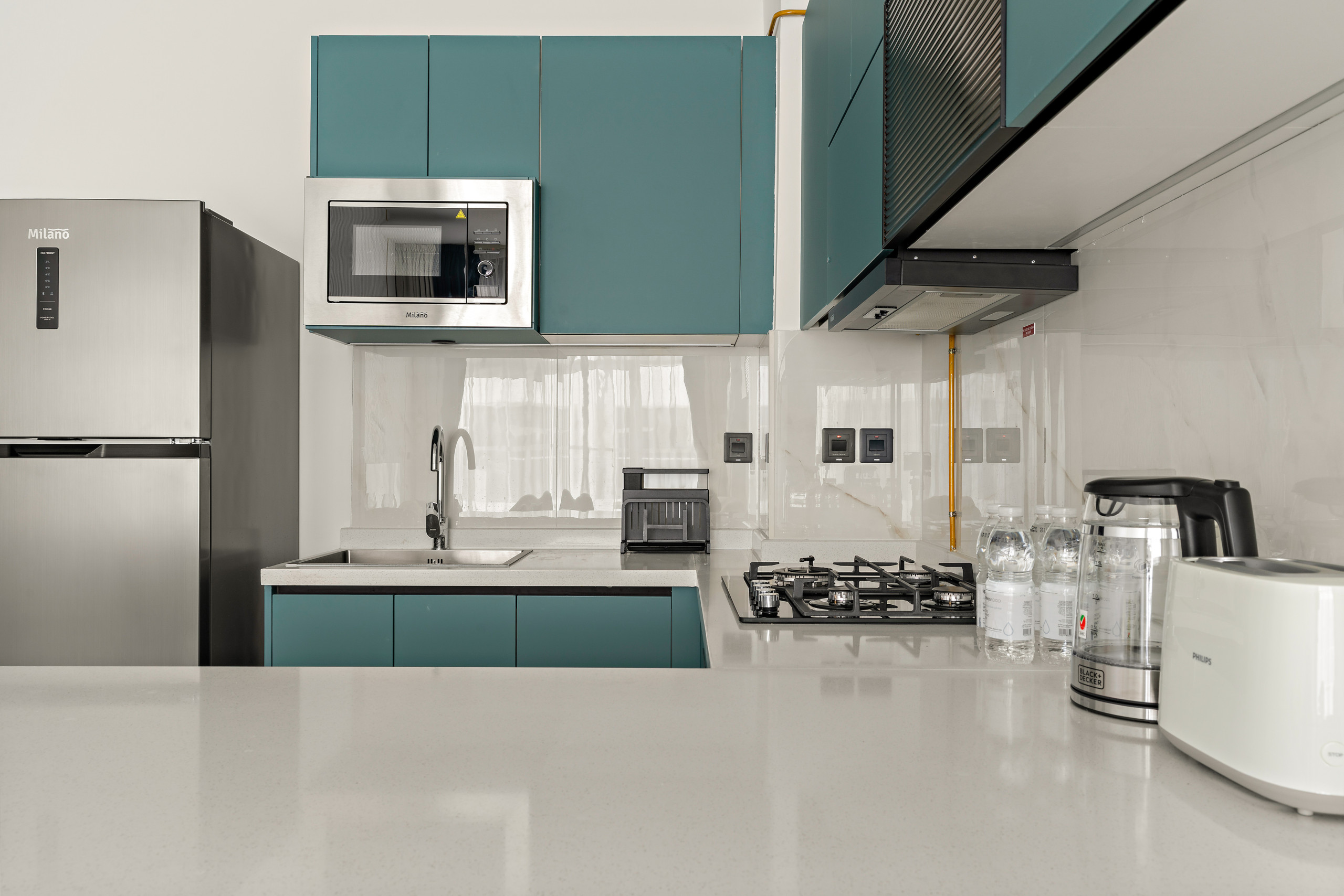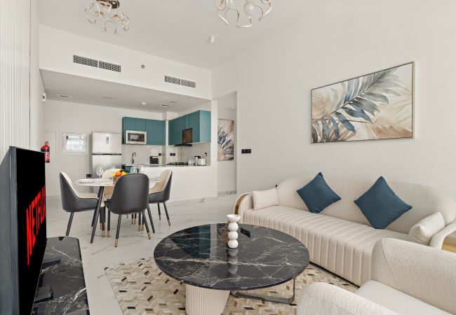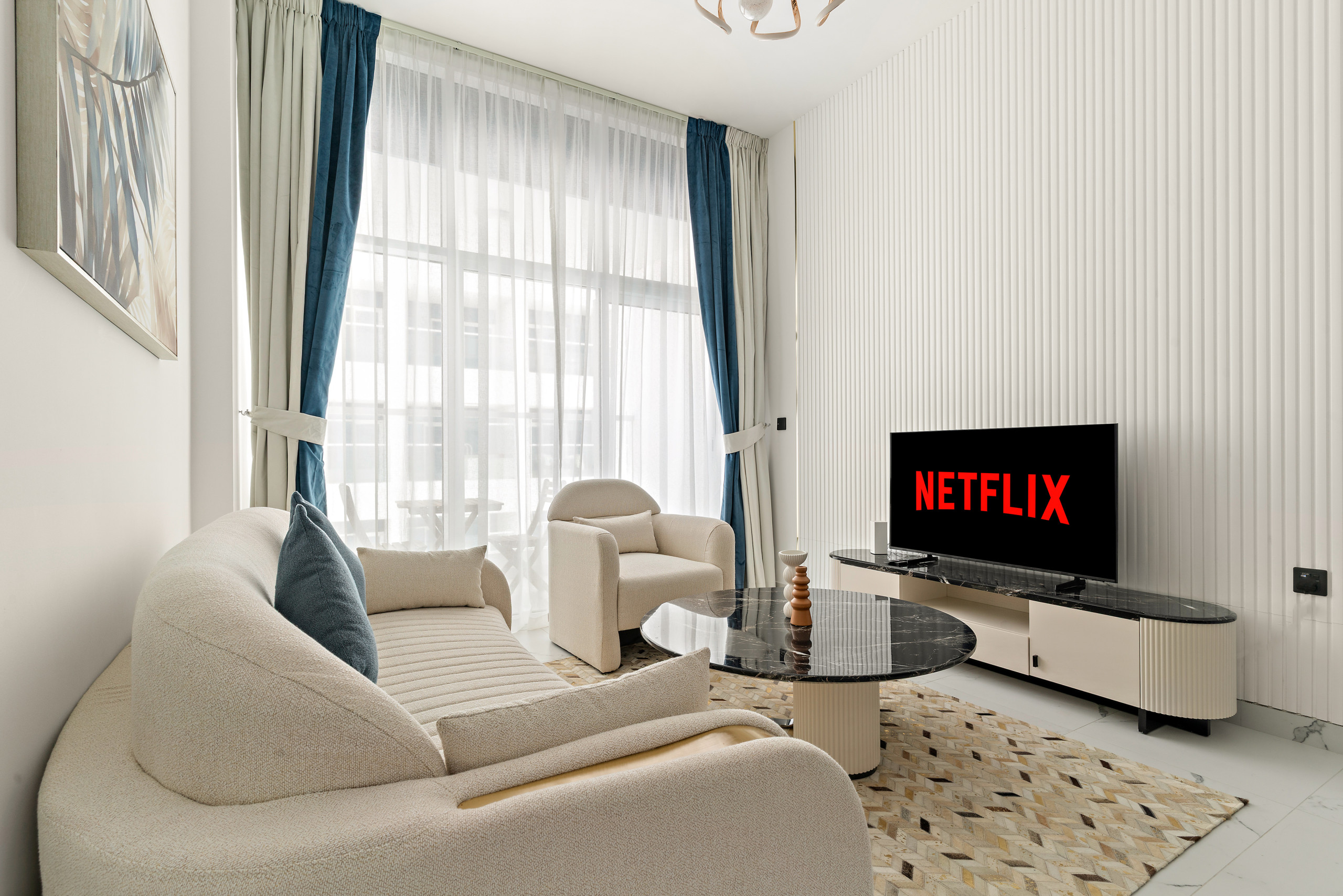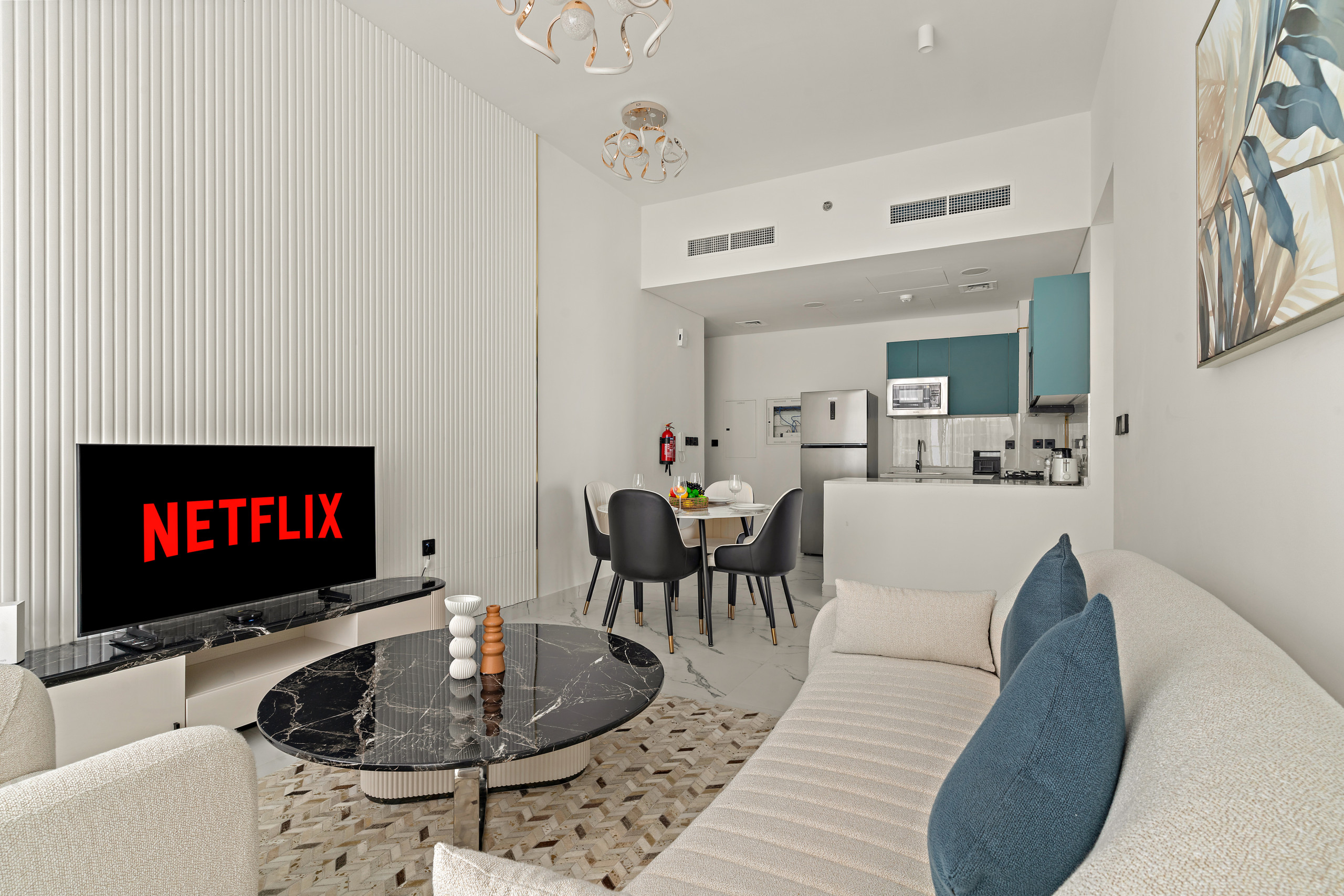The apartment in Dubai has 2 bedrooms and has capacity for 5 people (max. 4 adults). The apartment is 1,041 ft². The accommodation is equipped with the following items: outdoor furniture, terrace, washing machine, barbecue, internet (Wi-Fi), balcony, children area, tennis court, gym / fitness centre, air-conditioned, communal+children's swimming pool, garage in the same building, 1 TV.In the gas open plan kitchen, refrigerator, microwave, oven, freezer, dishes/cutlery, kitchen utensils, toaster and kettle are provided.